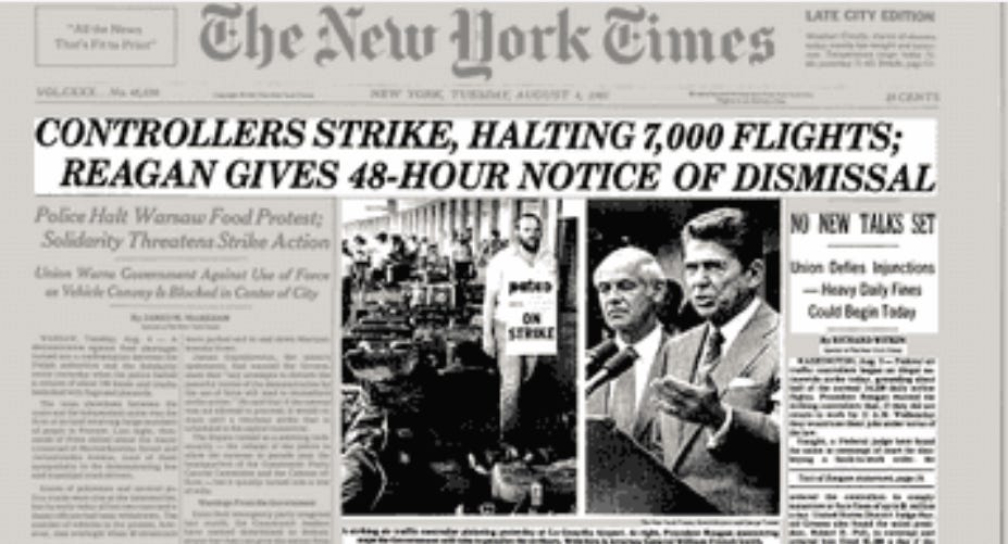 Contrast that with a very similar ATC headline from 1981 (Reagan’s firing of air traffic controllers):