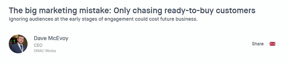 Performance marketing works great—on the people ready to buy—but entirely misses everyone earlier in the sales funnel.